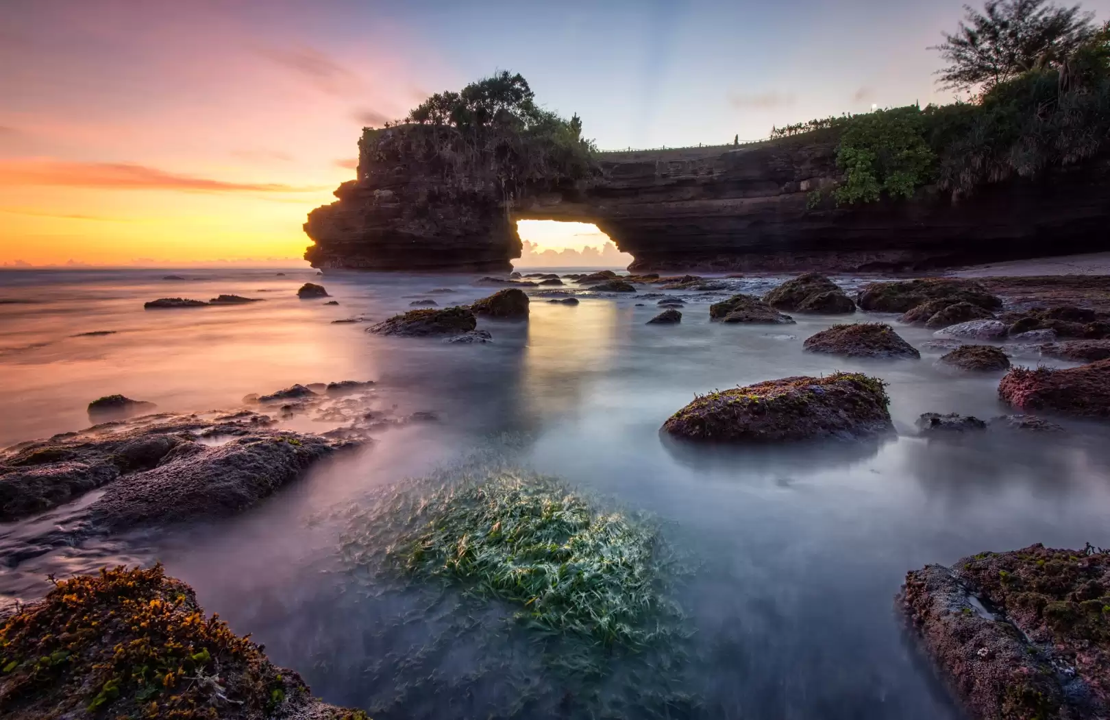 - Sunset at Tanah Lot Temple.