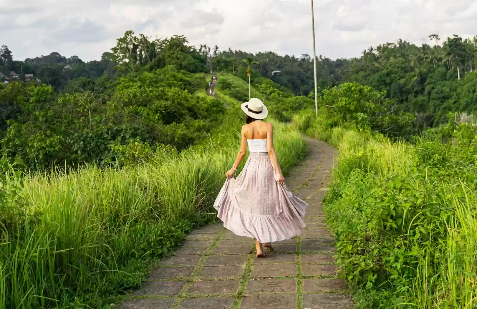 The Campuhan Ridge Walk is a peaceful hiking trail surrounded by lush green hills and rice fields, making it one of Ubud’s most scenic spots.